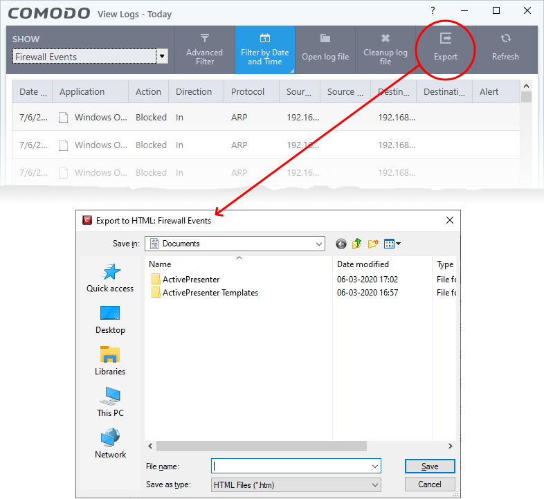 Action - How the firewall reacted to the connection attempt. For example, whether the attempt was allowed, blocked o r an alert displayed.
